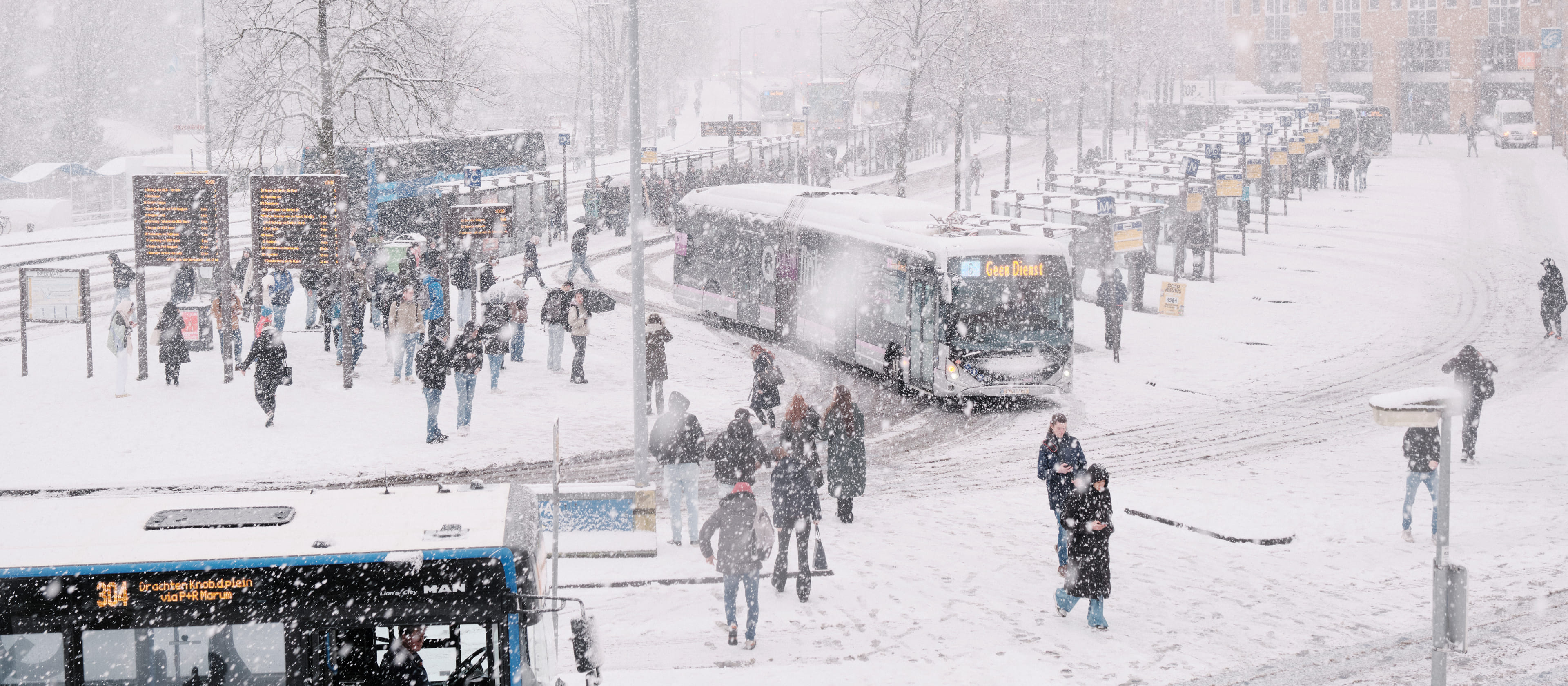 Zaterdag 24 januari rijden we volgens dienstregeling. Houd vanwege het weer rekening met gladheid op de haltes en mogelijke uitval en/of vertraging in de dienstregeling. Wees voorzichtig!
