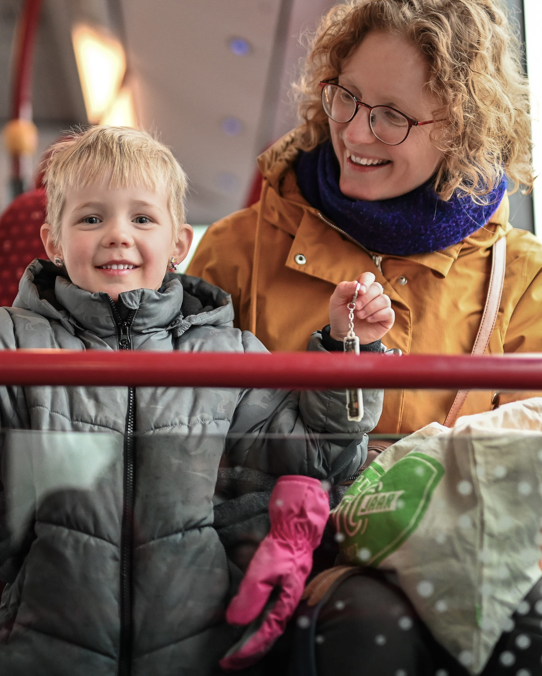 Als we straks bijna bij opa en oma zijn, dan druk ik snel op het stopknopje. Dan weet de bus dat hij moet stoppen. Later wil ik brugwachter worden. Dan doe ik de slagboom omlaag en moeten de auto’s stoppen. Als ik hem weer omhoog doe, mogen ze doorrijden. Maar bussen laat ik altijd voorgaan!